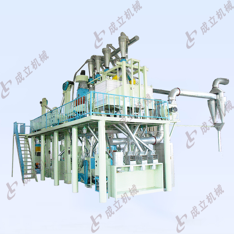 接著把玉米原糧送入粉碎機內進行粉碎和磨粉,磨出的玉米粉細度為60—200目不等,玉米面粉的水分含量為百分之15左右,玉米粉的細度要根據所制作的玉米食品的不同來調節,100目以下的適合做玉米粥、成人食用的玉米糊等。